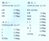 - 功能:日期、料號、扣重、上下限重、自動累計、總重、毛重、淨重